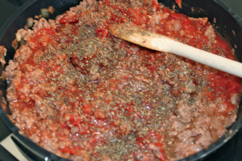 Faire revenir des oignons coupés finement dans une poêle avec un peu de matière grasse pendant quelques minutes à feu moyen. Une fois les oignons bien coloré et devenus translucides incorporer la viande hachée. Faire mijoter 10-15 min. J’ai personnellement utilisé des steaks hachés surgelés à l’oignon Charal, ils se marient parfaitement à ce type de recette où la viande hachée cuit plusieurs fois.
