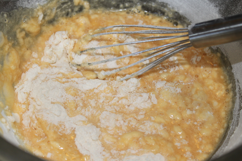 Incorporez dans les œufs battus en omelette la farine en plusieurs fois.
