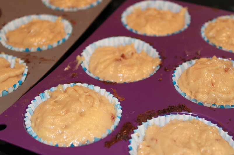 Garnir les moules entièrement avec la préparation. Moi j’y ai déposé des petits moules à cupcakes, c’est joli et ça aide à démouler très facilement.