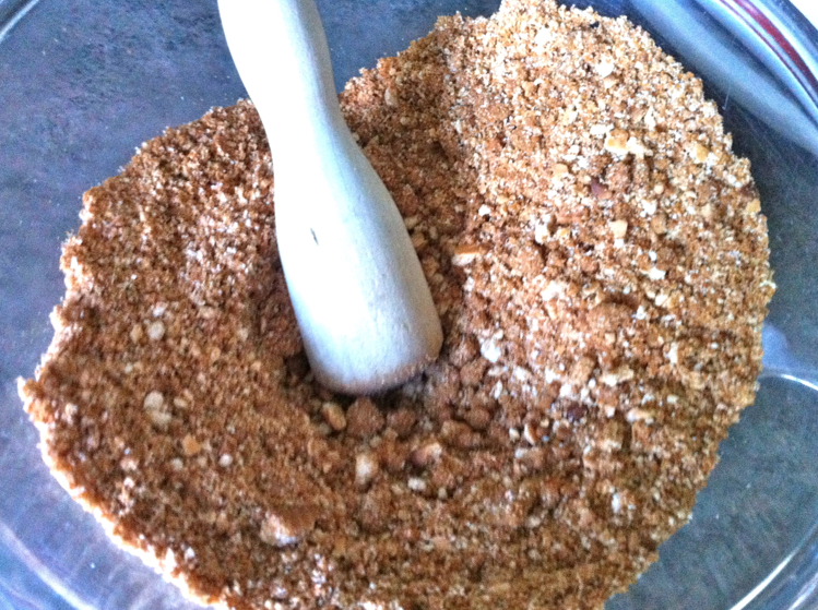 Piler le plus finement possible les biscuits. Il est inutile de rendre le mélange complétement homogène, l’essentiel est d’obtenir des morceaux les plus petits possibles.