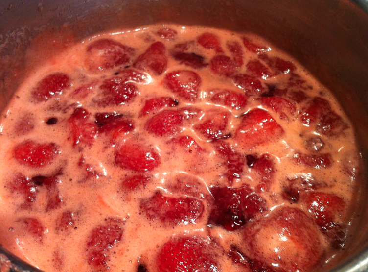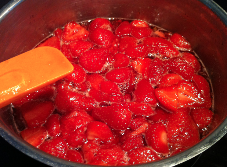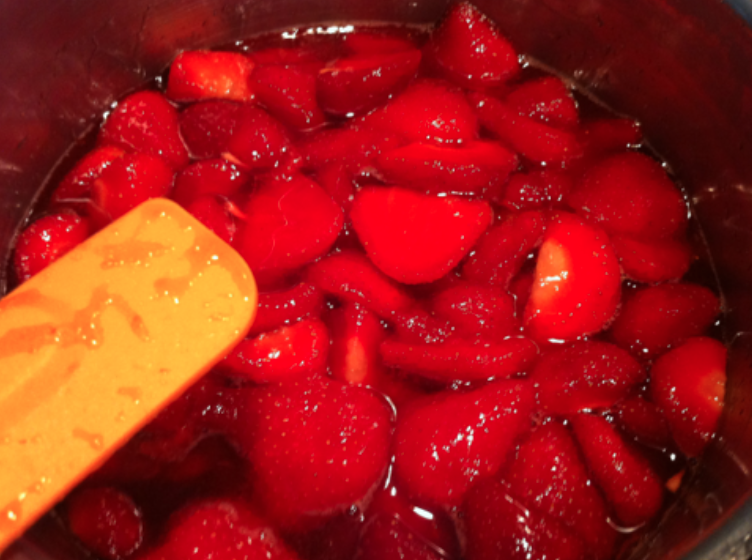 Les fraises vont commencer à cuire lentement.