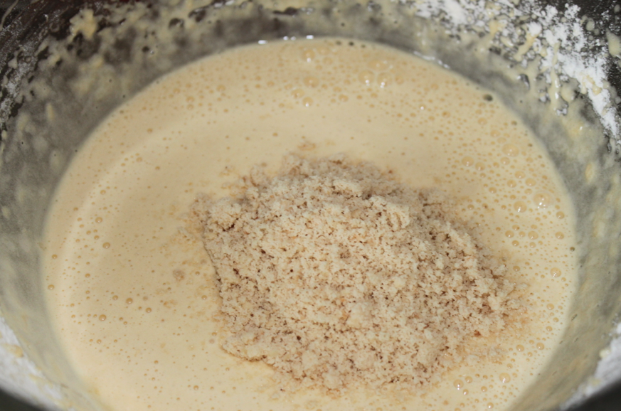 Ajouter la farine et le beurre bien mou. Pour bien incorporer le beurre, il est préférable d’avoir un batteur même un petit batteur à main comme moi. Mais on peut tout à fait faire ça à la main.