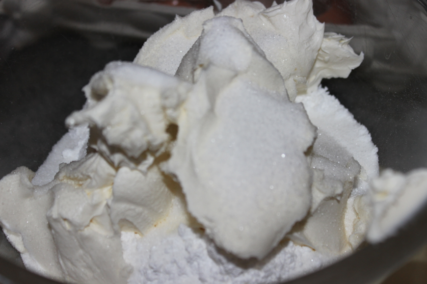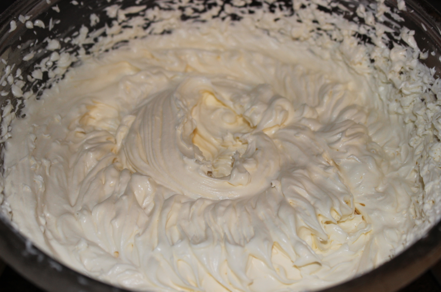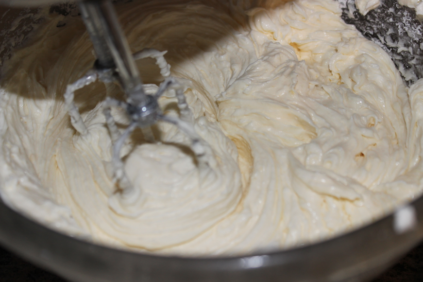 La crème semble très vite ferme, mais encore une fois mieux vaut trop la travailler que pas assez. Donc moi j’ai battu pendant 3-4 minutes.