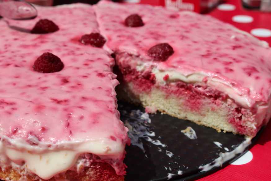 Recouvrir avec l’intégralité de la crème aromatisée à la framboise.