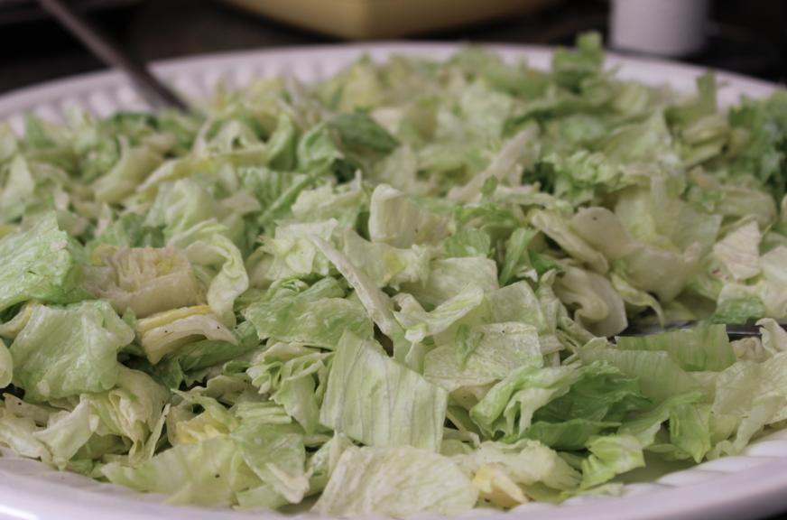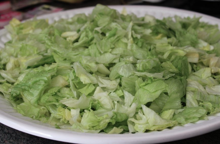 - 2 salades iceberg (pour moi les moyennes qui se vendent en grande surface sous plastique)