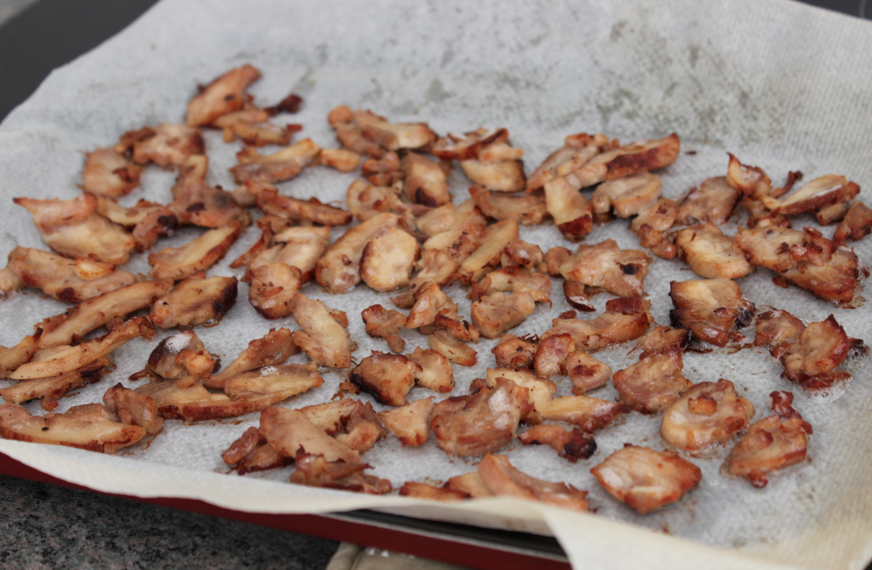 Plus vos morceaux seront épais meilleur sera le goût car passés au four il deviendront croustillants à l’extérieur et fondants à l’intérieur. Je les choisi fumé c’est meilleur et ça match complètement avec la recette.