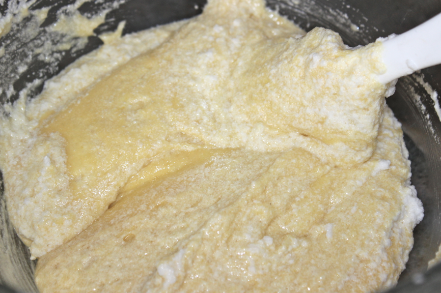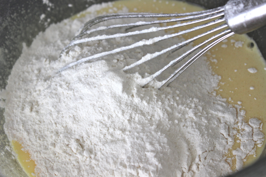 Ajouter la farine et mélanger jusqu’à obtention d’une pâte bien homogène.