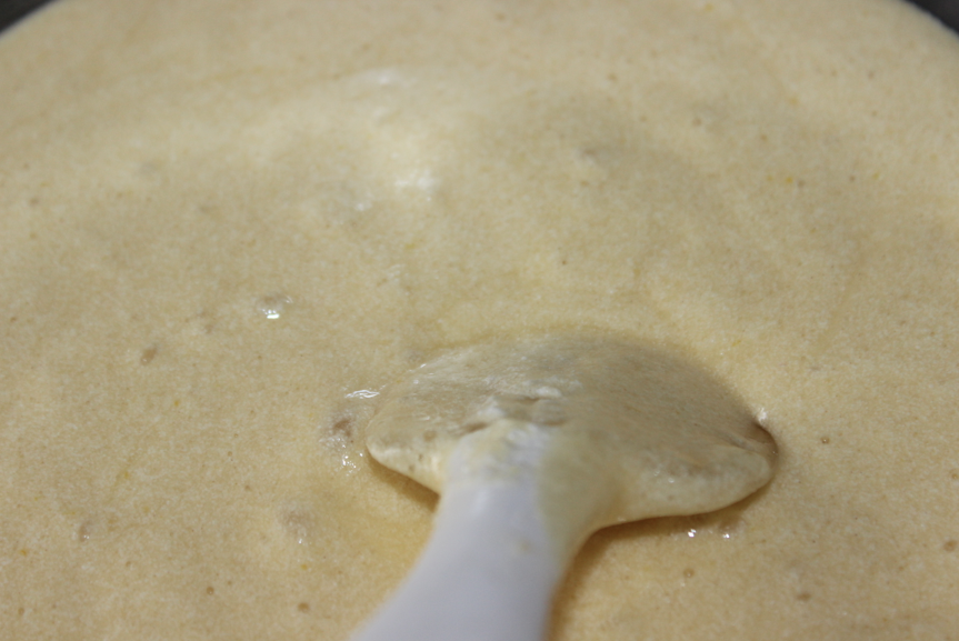 Renouveler l’opération jusqu’à ce que tout le mélange ait été absorbé, excepté l’équivalent d’une cuillère à café à mettre de côté pour le glaçage.